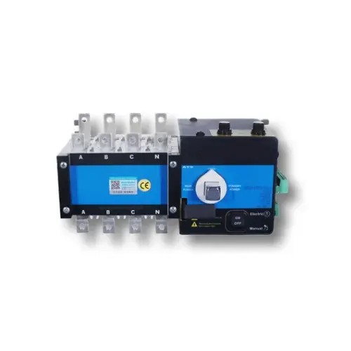 400 амп трофазни аутоматски преносни прекидач атс је уређај за пребацивање снаге великог капацитета дизајниран за трофазне електричне системе. Континуирано прати статус два извора напајања и аутоматски преноси критична оптерећења између њих током нестанка, аномалија напона или кварова фазе, обезбеђујући непрекидно напајање за индустрију, комерцијалу.